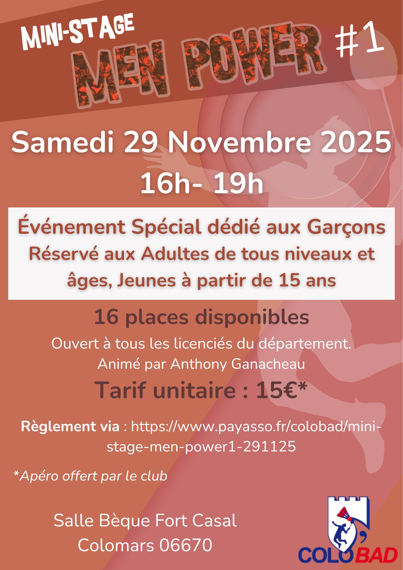 | Le seul Stage Adultes dédié uniquement aux garçons et destiné à toutes les joueurs licenciés du département, dès 15ans.