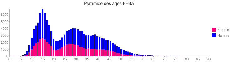 Pyramide des âges des licenciés FFBaD